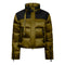 GIACCONE CON CAPPUCCIO, IN TESSUTO RIPSTOP, IMBOTTITO E TRAPUNTATO ORIZZONTALMENTE (TRAPUNTO ALTO). CARRÈ E COLLO IN TESSUTO POLYCOTONE. ALLACCIATURA CENTRO DAVANTI CON LAMPO, COPERTA DA FINTA CON BOTTONI A PRESSIONE TESTA NASCOSTA. CAPPUCCIO STACCABILE TRAMITE ZIP. AL COLLO NASTRO BICOLORE PERSONALIZZATO AMOVIBILE CHIUSO CON FIBBIA. CINTURA IN NASTRO NERO CHIUSA CON FIBBIA. BRETELLE STACCABILI PERSONALIZZATE ALL'INTERNO DEL CAPO, CHE PERMETTONO DI INDOSSARE IL CAPO COME SE FOSSE UNO ZAINO. PERSONALIZZAZIONE CON MACRO-PATCH ALLA MANICA SINISTRA IN CONTRASTO NERO. IMBOTTITURA FAKE DOWN (GR.250 CIRCA).