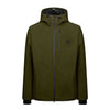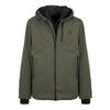 GIACCONE CON CAPPUCCIO, IN TESSUTO TECNO SOFT SHELL, IMBOTTITO NON TRAPUNTATO. CHIUSURA CON CERNIERA. FODERA TRAPUNTATA ORIZZONTALMENTE IN NYLON LUCIDO. FINTO GILET, FISSO, CON CAPPUCCIO ALL'INTERNO DEL CAPO IN TESSUTO NYLON. CAPPUCCIO CON VISIERA IMPUNTURATA E POLSI IN COSTA. FONDO DEL RETRO PIÙ LUNGO DEL DAVANTI E LEGGERMENTE STONDATO. BRETELLE STACCABILI PERSONALIZZATE, CHE PERMETTONO DI INDOSSARE IL CAPO COME SE FOSSE UNO ZAINO. IMBOTTITURA OVATTA PESANTE (GR.250 CIRCA).